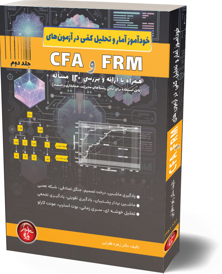 در دنیای امروز، دانش مالی به یکی از ارکان اساسی تصمیم¬گیری¬های حرفه¬ای تبدیل شده است. آزمون‎های معتبر بین¬المللی همچون FRM و CFA به متخصصان مالی این امکان را می¬دهند که مهارت¬های خود را به سطحی بالاتر برده و جایگاهی برجسته در دنیای مالی کسب نمایند. یکی از کلیدی¬ترین مباحث این آزمون¬ها، آمار و تحلیل کمّی شامل مدل¬های مختلف آماری و یادگیری ماشین است؛ دانشی که نه تنها در امتحانات، بلکه در مسیر حرفه¬ای هر تحلیلگر مالی نقشی حیاتی ایفا می¬کند. این کتاب به عنوان یک راهنمای خودآموز جامع طراحی شده است تا شرکت‌کنندگان برای شرکت در دو آزمون مذکور بتوانند با زبانی ساده و مثال¬های کاربردی، مفاهیم پیچیده مدل‌سازی¬های یادگیری ماشین و موضوعاتی همچون شبیه¬سازی و آزمون¬های ناپارامتری را درک کنند. همچنین، مثال¬های متعدد در حوزه مالی و بانکی در ارتباط با این موضوعات ارائه و بررسی شده¬اند. به دلیل گستردگی ابعاد مختلف این روش¬ها بدیهی است، سعی شده تنها به جنبه¬های بنیادی پرداخته شود تا خواننده، فلسفه اصلی آنها را تا اندازه¬ای درک نموده و در ادامه مسیر یادگیری، علاوه بر حل مسائل دو آزمون مذکور، در صورتی که علاقمند به پیاده¬سازی این روش¬ها در محیط¬های برنامه‎نویسی همچون پایتون باشد، قادر به تحلیل خروجی¬های این پیاده¬سازی¬ها گردد. از این¬رو، همه دانشجویان رشته¬های مدیریت، حسابداری، اقتصاد و علاقمندان به یادگیری آمار و مدل‌سازی نیز می¬¬توانند از محتوای این کتاب بهره ببرند. هدف نویسنده این بوده که پیچیدگی¬های ریاضی را با توضیحات روشن و قابل فهم کاهش داده و ابزارهای تحلیل را به شیوه¬ای عملی ارائه نماید. در جلد نخست این کتاب به مفاهیم پایه¬ای آمار و نیز مدل‌سازی رگرسیون پرداختیم و اکنون از آن مفاهیم در درک روش¬های پیشرفته¬تری که استفاده از آنها در دو دهه اخیر به طور گسترده و فزاینده¬ای در حوزه‎های مالی و اقتصادی رشد چشمگیری داشته بهره می¬بریم. نویسنده با تکیه بر سال¬ها تجربه در تدریس و تحقیق در حوزه تحلیل داده در رشته¬های مختلف علمی، سعی بر آن نموده است که مباحث پایه¬ای در این کتاب را به شیوه¬ای ساده و کاربردی تشریح نماید. امیدواریم این کتاب بتواند راهگشای شما در مسیر موفقیت باشد و به شما کمک کند که با "اعتماد به ‌نفس و دانش کافی" آزمون‌های پیش رو را پشت سر بگذارید. موفقیت شما، افتخار ماست.